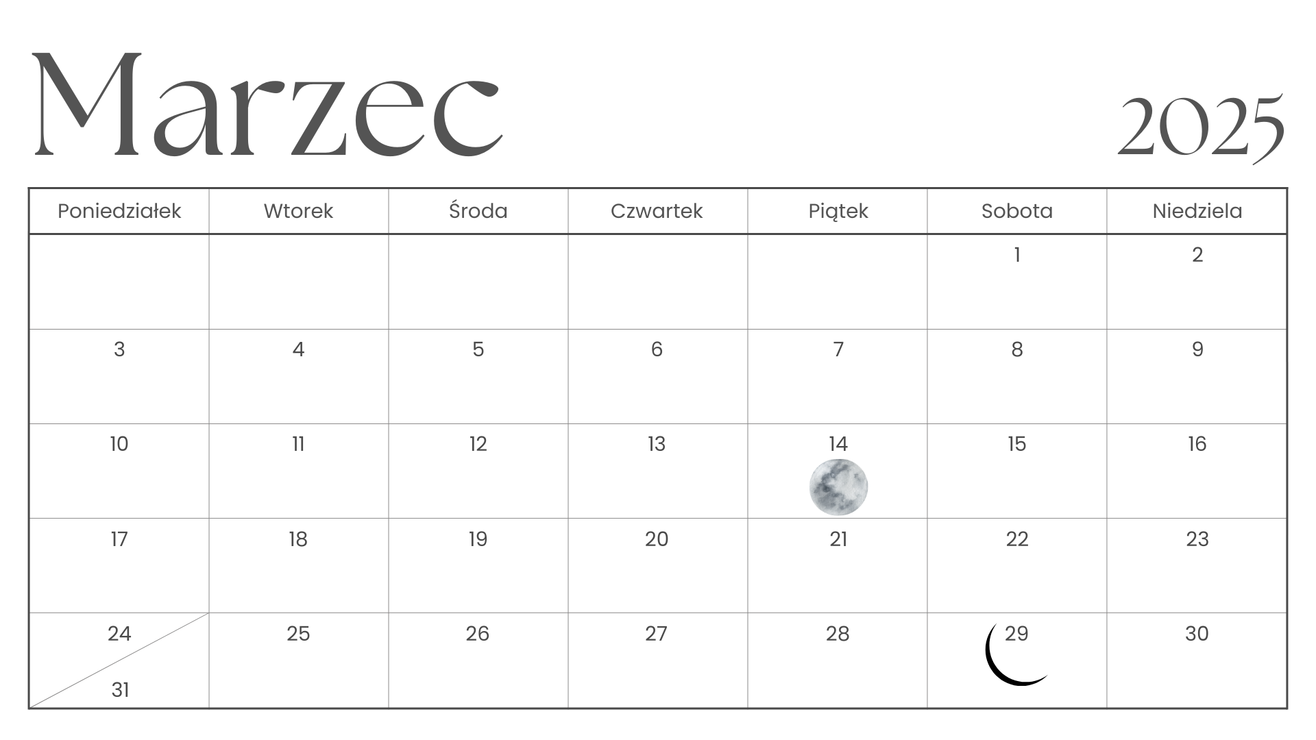 • każdy miesiąc zawiera kalendarz do druku i kartę pracy